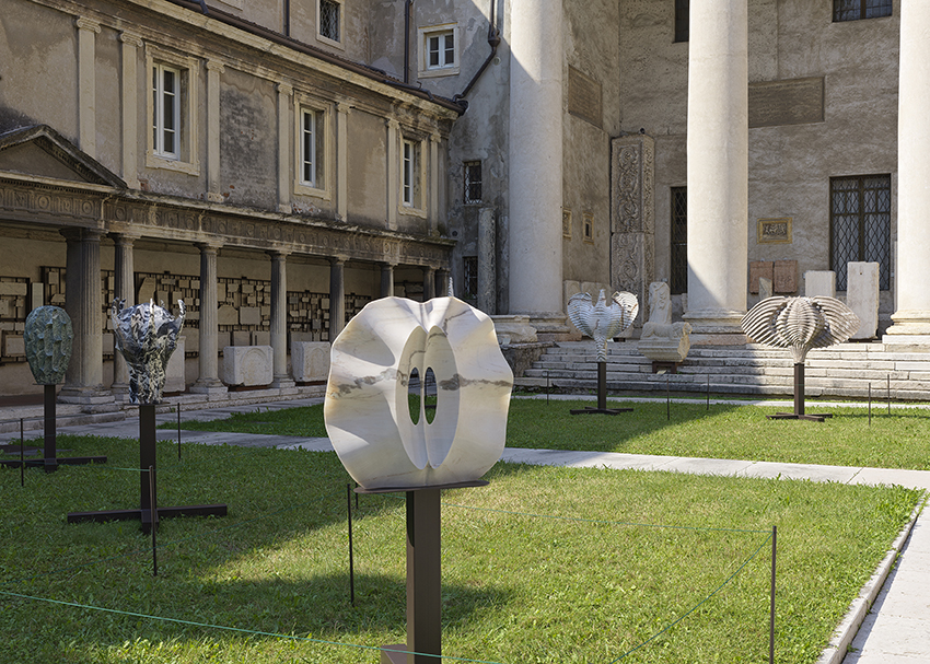 It is this intense dialogue between past and contemporaneity that curator Alfonso Cariolato identifies as “a fertile interaction between the massive presence of a living past and a lapidary work that moves among organic configurations, refined proportions, and elegant symmetries.”