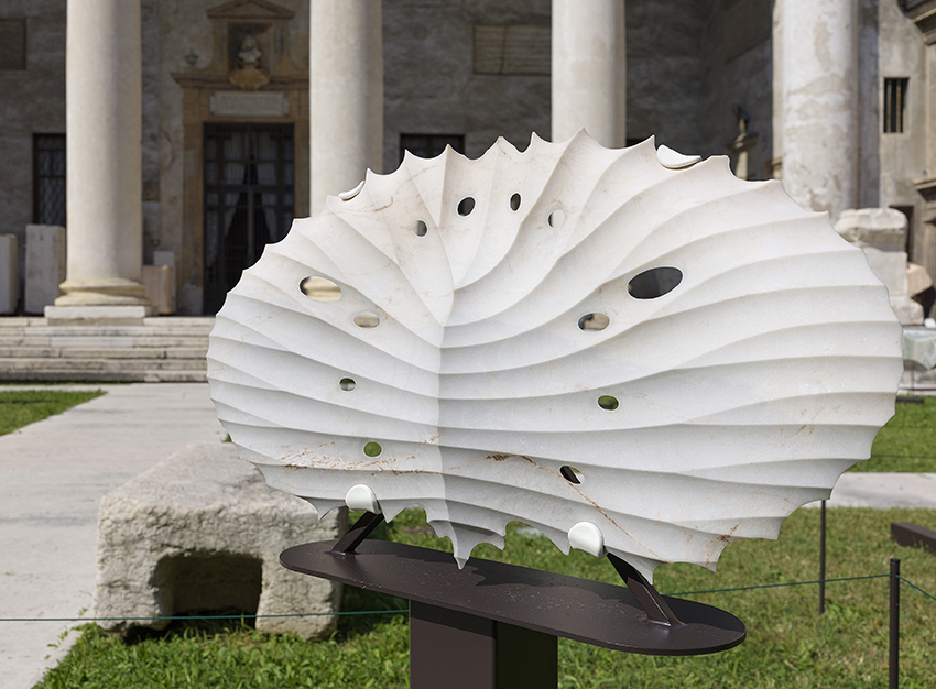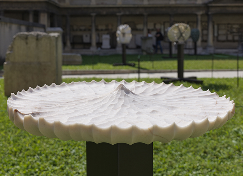 In the end, seeing his sculptures in the Lapidary courtyard meant accepting that stone can still surprise us. That it can be light, membranous, transparent, radically contemporary. That it can vibrate. And that, as Roger Caillois once wrote, it can continue to let “time slip across its surface.” In this slipping, Galiotto finds his place: an axis of the world that is neither stable nor definitive, but alive, mobile, always in transformation.