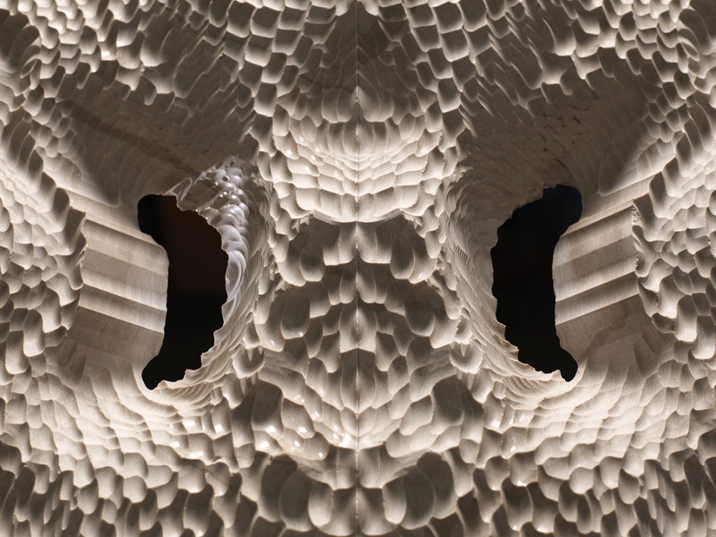 Raffaello Galiotto, “Symmetric III” (dettaglio), 2019, marmo Avorio Venato, 83 x 23,5 x 93 cm © Raffaello Galiotto — foto © Studio Galiotto